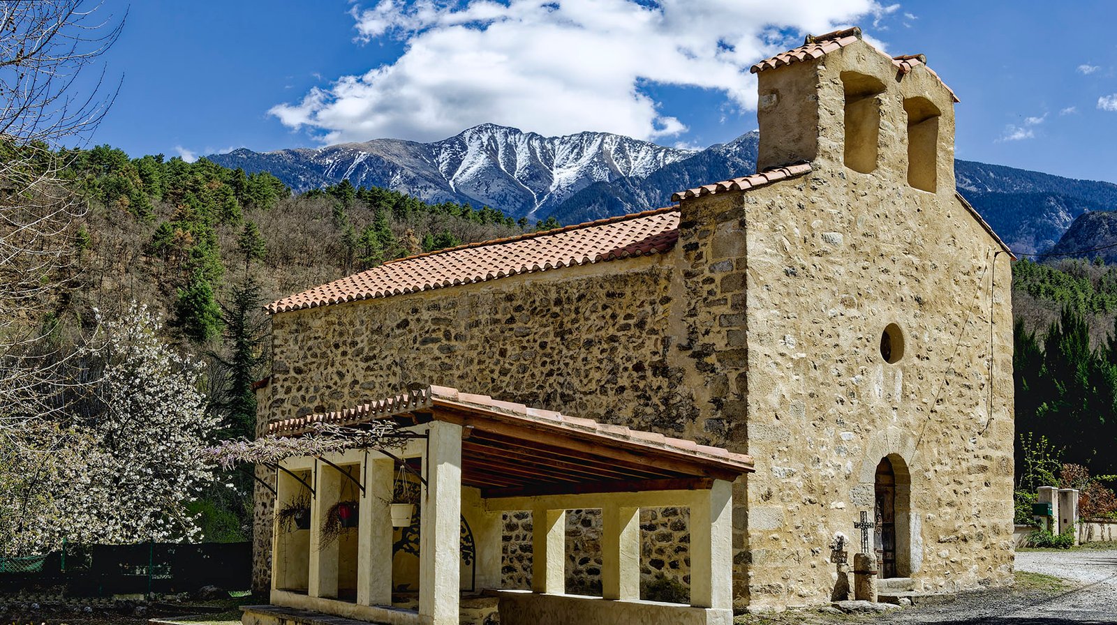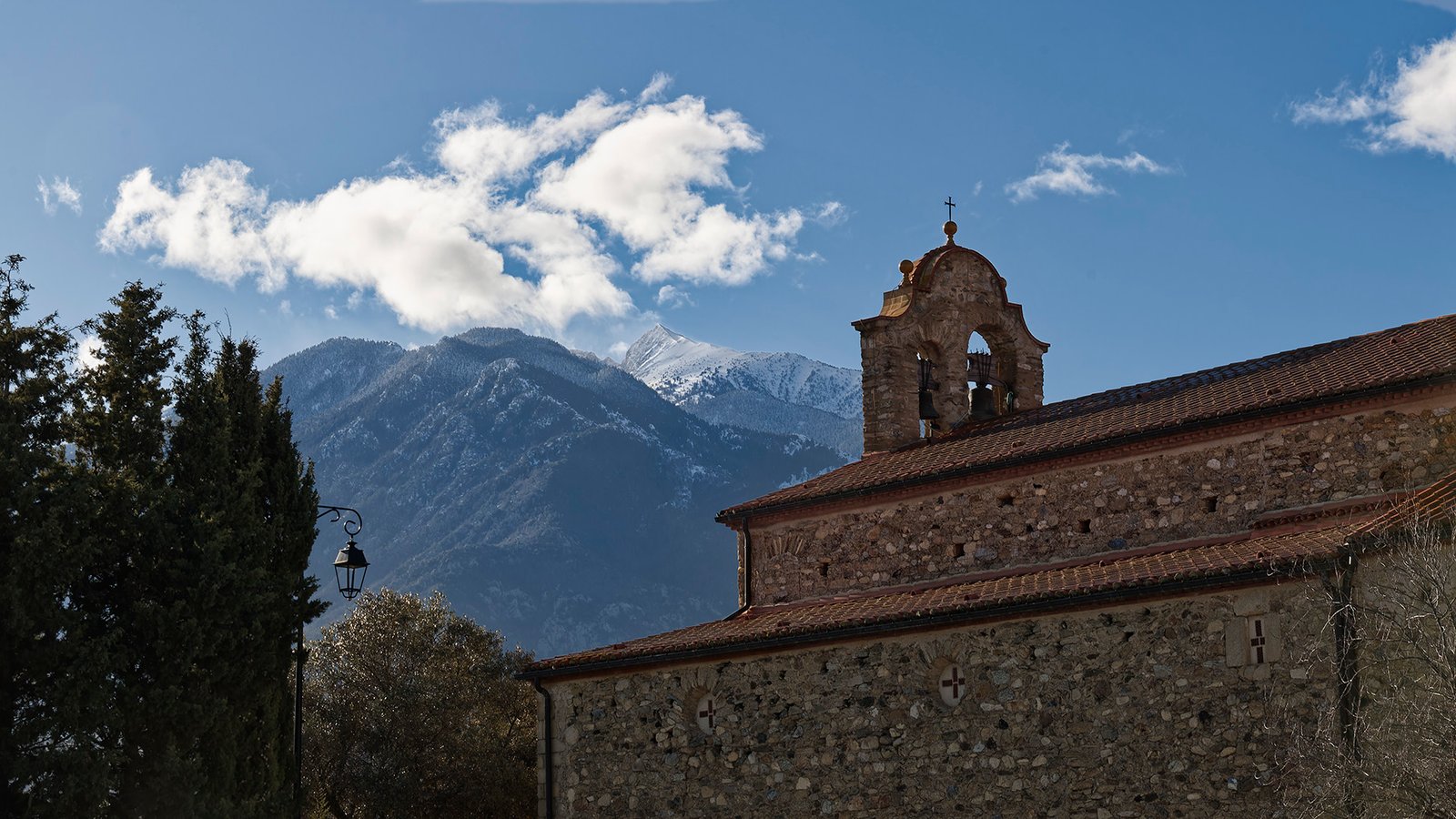 En lien avec l’élément phare des Pyrénées orientales le massif du Canigo’, « Montagne sacrée catalane », j’y ai associé un élément du patrimoine religieux du département que sont les églises, les chapelles et les monastères.